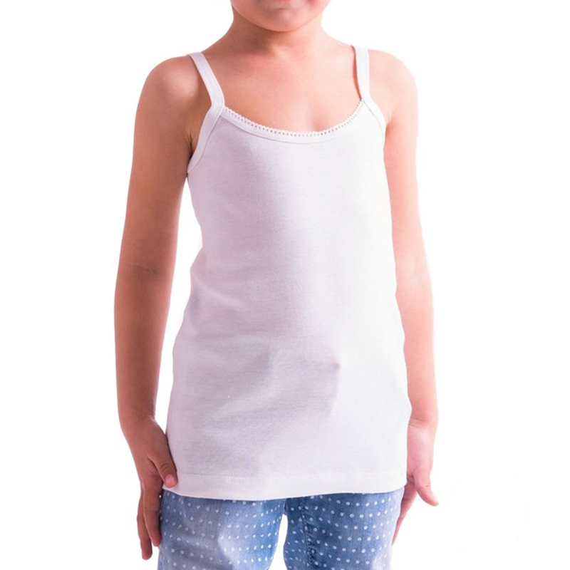 Украинская фабрика «Наталюкс» предлагает качественные трикотажные изделия. Майка для девочки отшита из 100% хлопка типа "рибана", который обладает высокими влаговпитывающими свойствами, прочностью. Майка на тонких бретелях, вырез украшен ажурной тесьмой.
