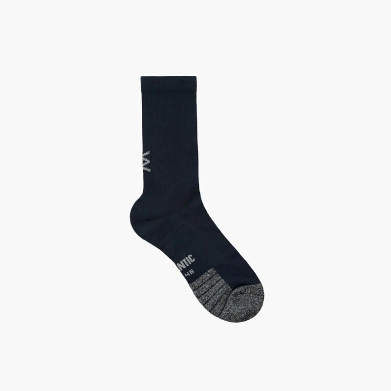 Мужские высокие носки с утепленной стопой. На стопе контрастный графический принт серого цвета и надпись ATLANTIC. Сзади над пяткой логотип контрастного цвета. Идеально подходит к спортивной одежде и повседневному стилю. Носки изготовлены из мягкой хлопковой стрейч-ткани, которая является сочетанием нежного, дышащего и приятного к телу хлопка, эластичного полиэстера (который хорошо держит форму), спандекса и лайкры. Полиэстер не деформируется и не мнется.