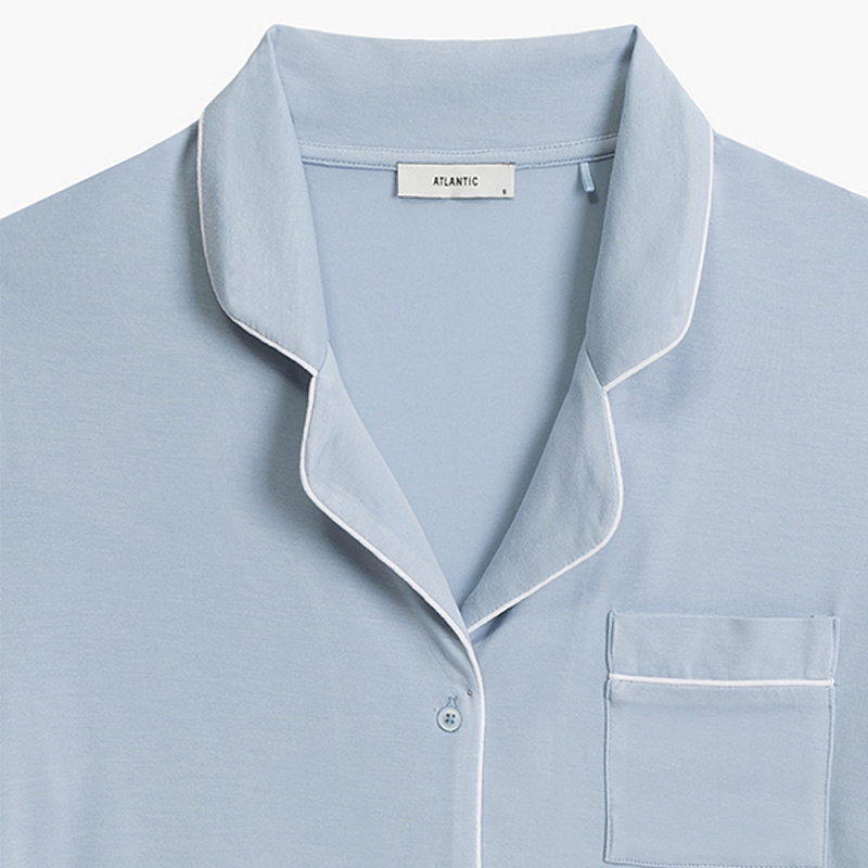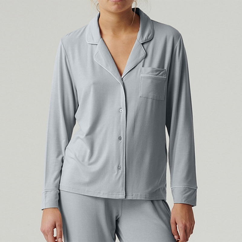 Комплект виконаний з 95% модала в поєднанні з еластаном, що робить його неймовірно м'яким, шовковистим і приємним до тіла. Класичний фасон сорочки на ґудзиках з відкладним коміром і довгими рукавами. Вільний крій забезпечує комфорт, а мінімалістичний дизайн надає елегантності. Штани прямого крою, зі зручною посадкою і м'яким поясом, який не стягує, а делікатно підтримує.