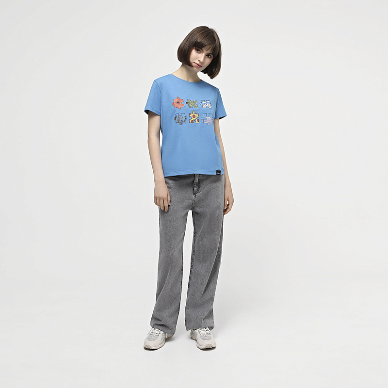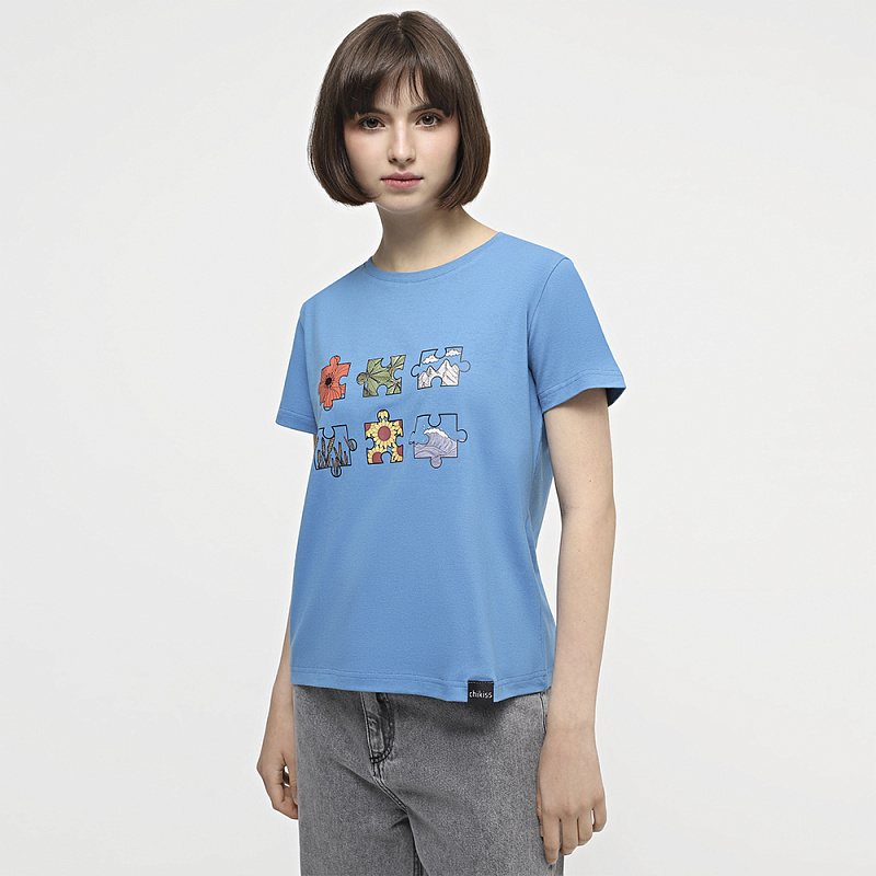 Женская футболка от украинского бренда Chikiss – стиль и комфорт каждый день! Изготовлена из высококачественного хлопка, с круглым вырезом, коротким рукавом и ярким принтом в виде пазла. Отличный выбор для повседневной носки и создания модного образа.