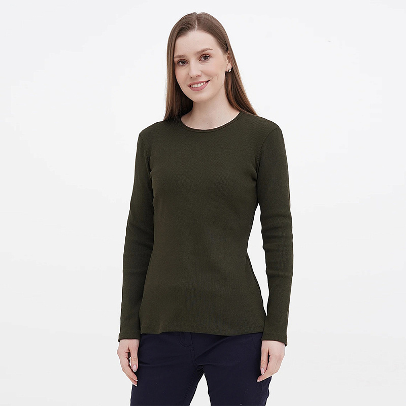 Мягкий и эластичный женский лонгслив с длинным рукавом. Круглый вырез горловины.