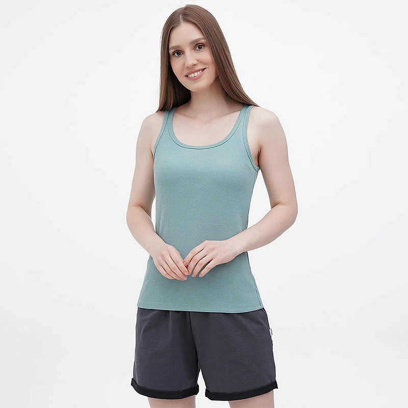 Базовая майка в рубчик на широких бретелях виполнена из хлопка з добавлением эластана. Мягкая и эластичная.