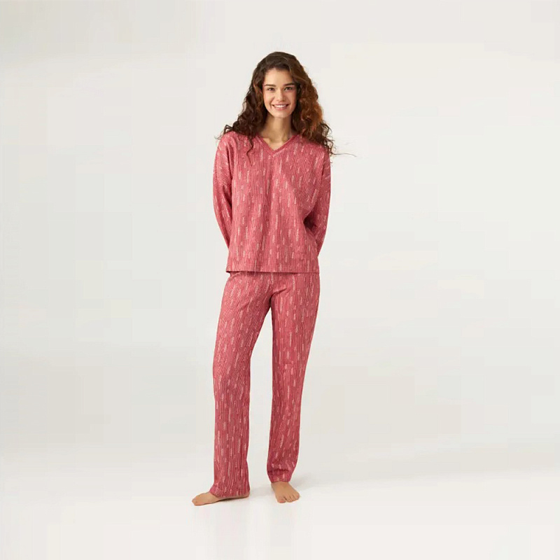 Домашняя теплая женская пижама на флисе из хлопка с добавлением эластана. Комплект состоит из футболки с длинным рукавом и брюк.