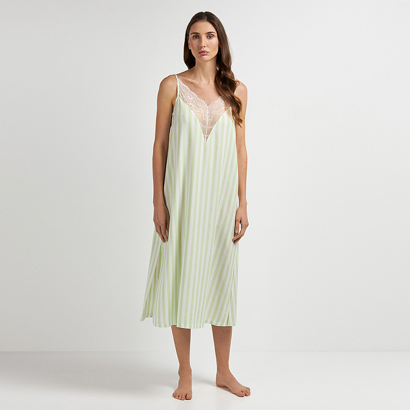 Длинная ночная рубашка с кружевом выполненная из 100% вискозы, представляет собой идеальное сочетание изысканности и нежности. Кружевные вставки придают ей романтический шарм и изысканный вид, что делает эту модель по-настоящему привлекательной.