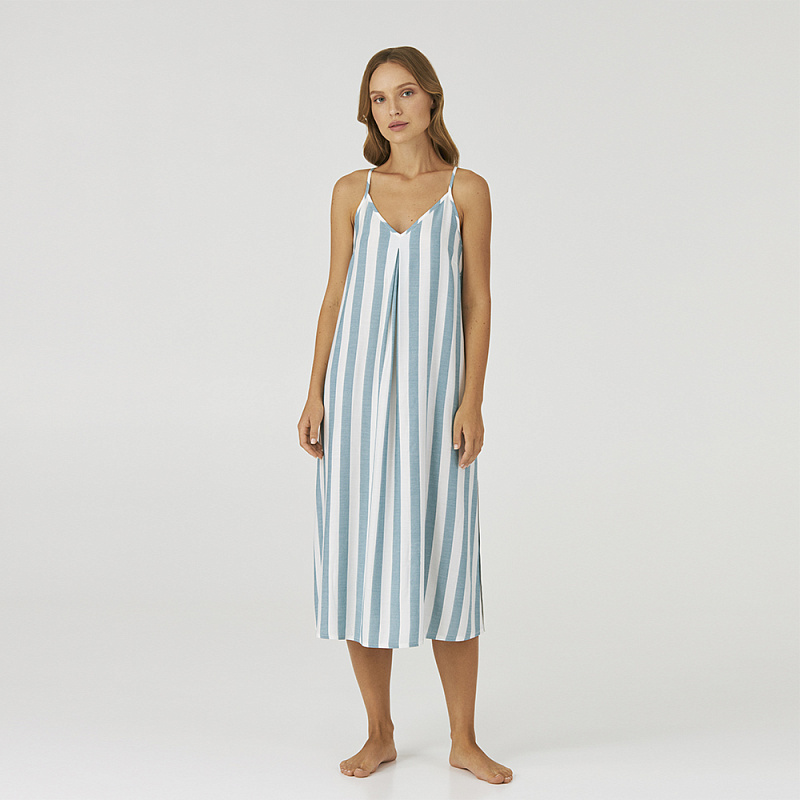 Ночнушка выполнена из качественной и мягкой вискозы, свободного силуэта и со встречной складкой спереди. Модель на тонких регулируемых бретелях и с V-образным декольте, длина ниже колен.