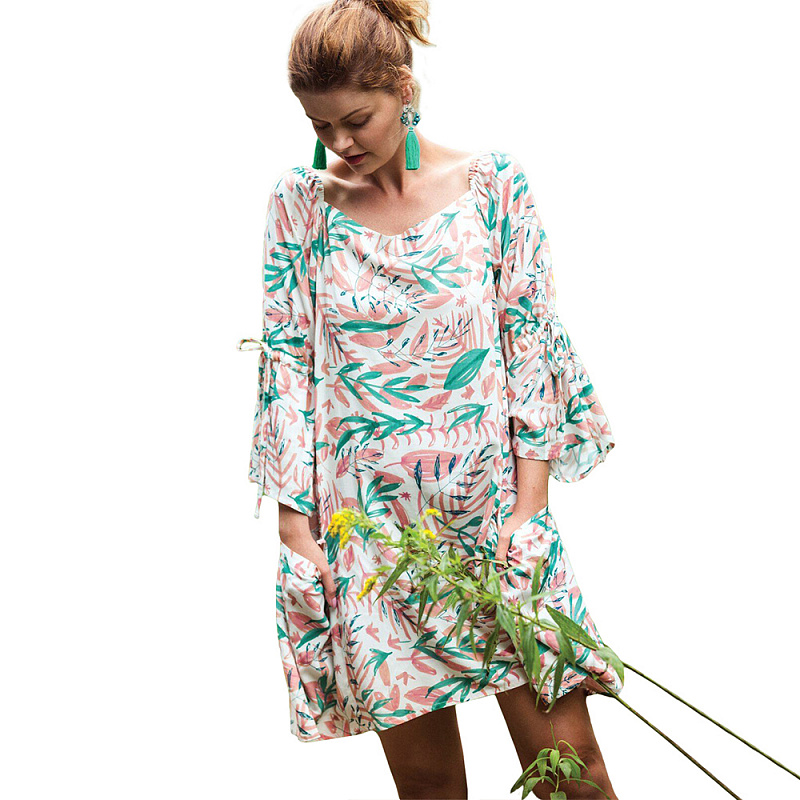 Женская домашняя сорочка из 100%-й качественной вискозы. Сорочка имеет рукава 3/4, общая длина выше колена, по бокам имеются удобные карманы. Цветочный, яркий принт.